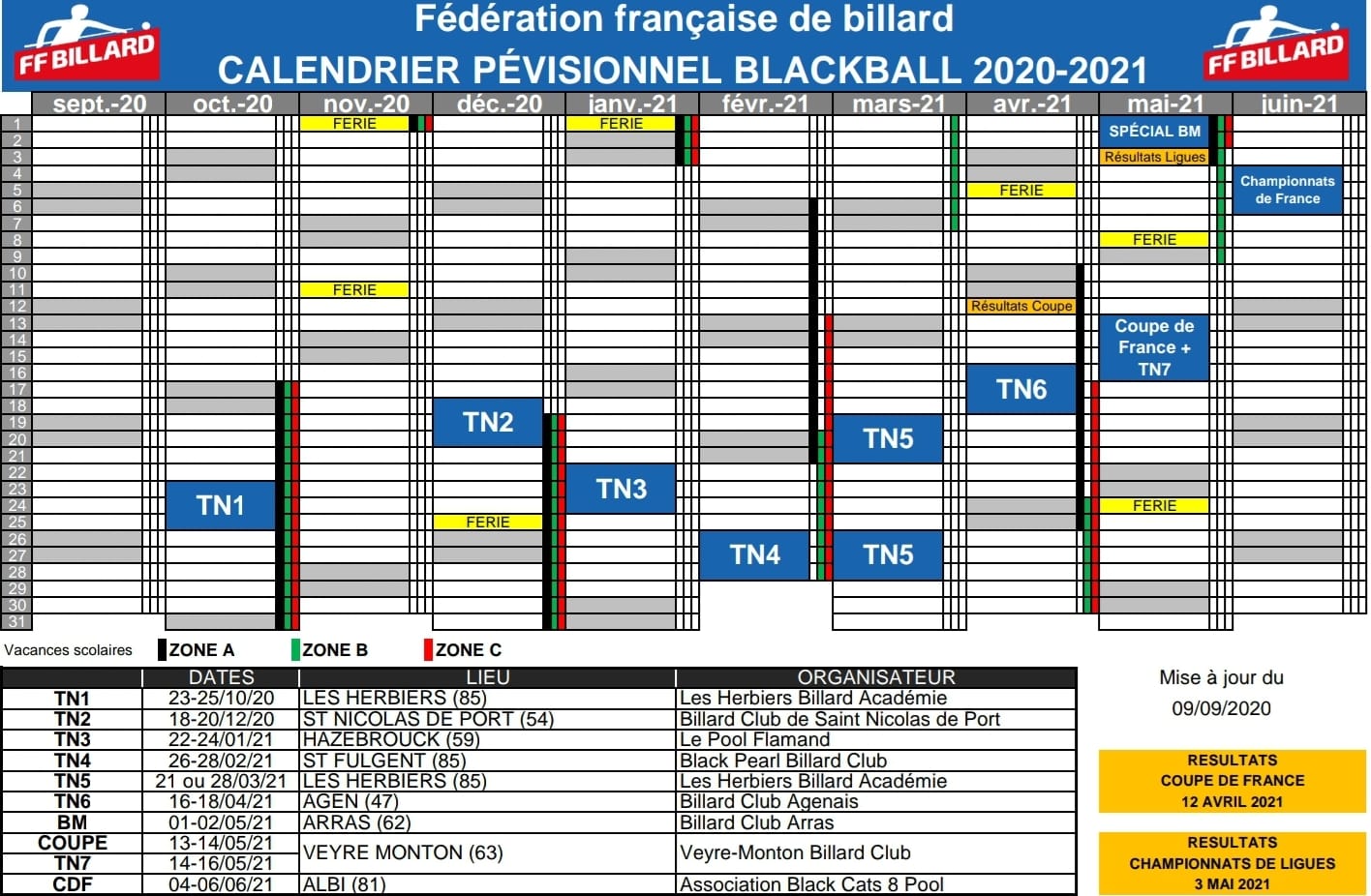 Calendrier 2020-2021 FFB Nationaux Blackball