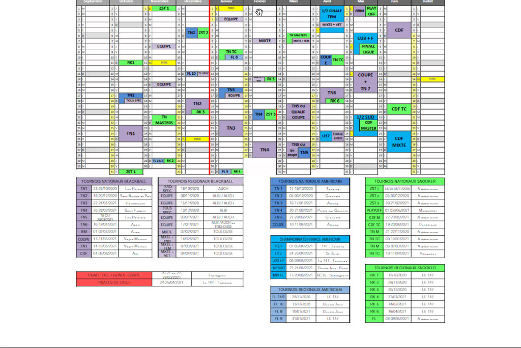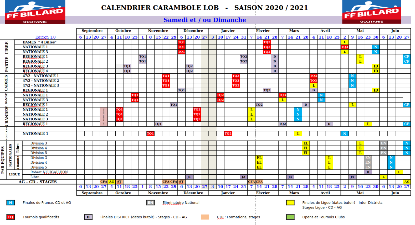 Calendrier Occitanie 2020-2021 FFB Régionaux Blackball-Snooker-Américain